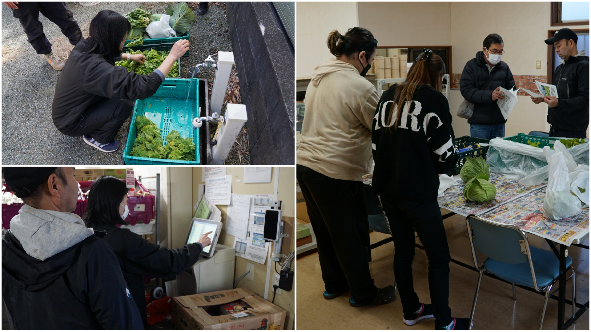 まずは、スタッフが野菜の水洗い、次にスタッフもフォローしながら、計量・袋詰め作業を利用者さんといっしょに作業を進めました。袋詰めが終わった野菜は、夕方にスタッフが近くのスーパーマーケットに陳列しました。